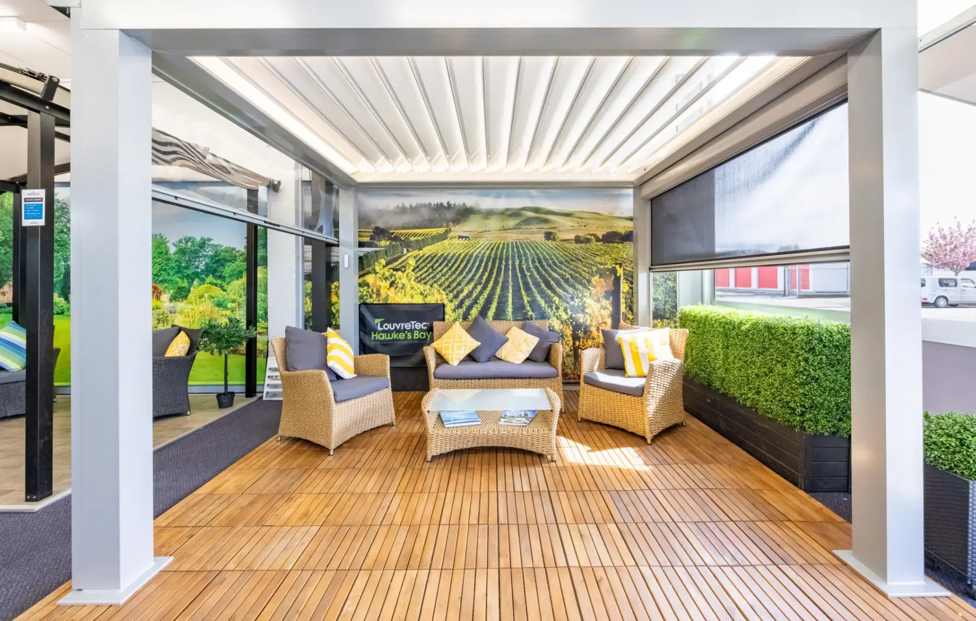 - Outdoor living systems, including louvre roofs, retractable roofs, glazed roofs, canopies and shade solutions