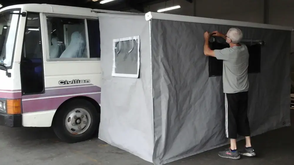 Visit Our Workshop With plenty of space to drive in and loop around, our Hastings workshop makes it easy to bring your campervan or motorhome in for awning repairs or installations. Drop by to browse canvas fabric samples and talk through your options with our expert team.